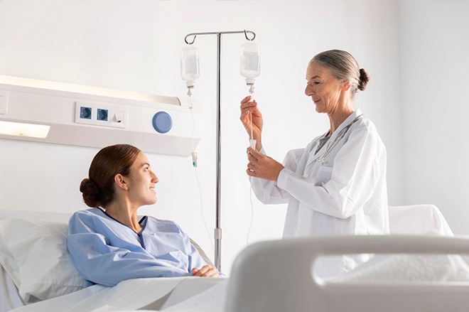 IV drip therapy delivers fluids, vitamins, and minerals directly into the bloodstream for quick hydration and nutrient absorption.